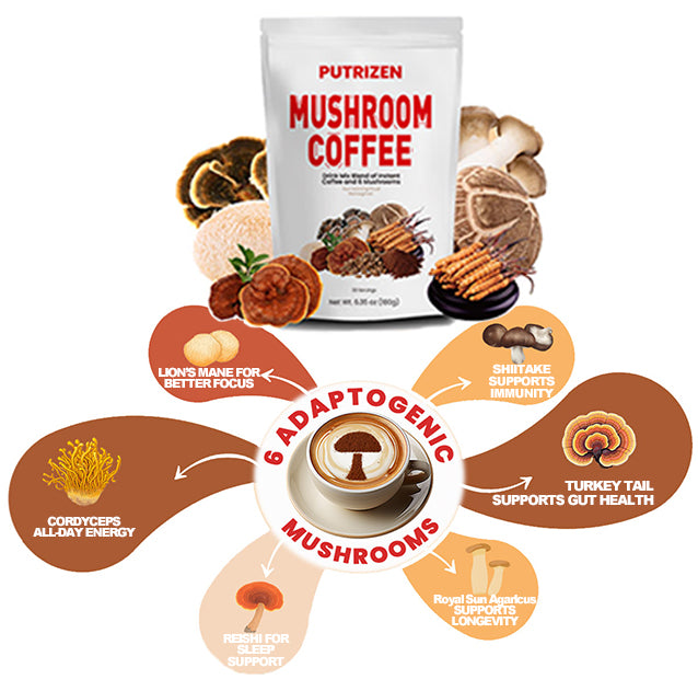 Drink Mix Blend of instantColfee and 6 Mushrooms.